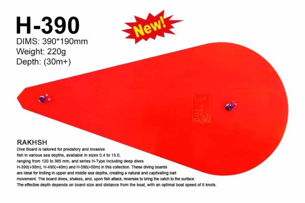 دایو بورد سری-H: در 3 سایز به طول 390mm , 490mm , 590mm با وزن 650 – 360 و 220 گرم در این مجموعه تولید می شود. H-590 بزرگترین دایو بورد تجاری با عمق بیش از 50+ متر می باشد.